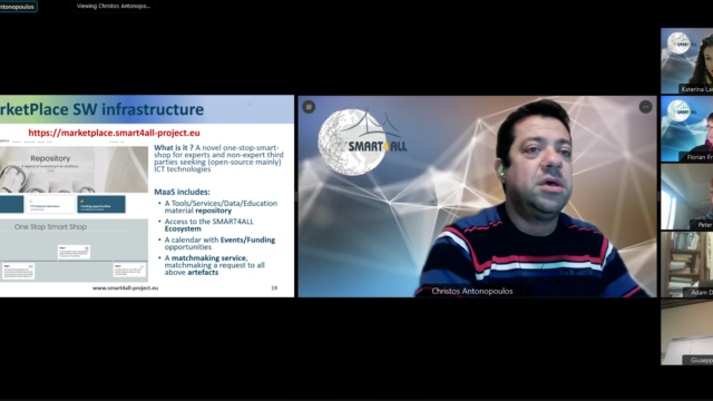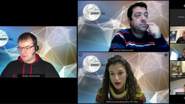 The floor was also given to Christos Antonopoulos, technical manager of SMART4ALL, who introduced the FTTE winners to SMART4ALL Marketplace emphasizing on their obligation to provide artefacts as a contribution to this novel one-stop-smart-shop, and to Katerina Lamprakopoulou, SMART4ALL communication officer, who gave the main communication guidelines for delivering material showcasing the projects’ results and supporting the experiments’ sustainability.