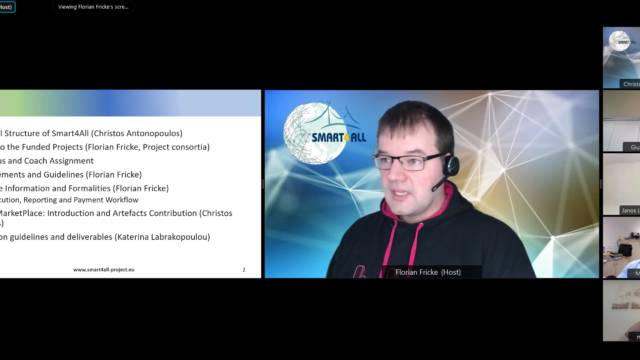 On December 2nd, 2021, SMART4ALL welcomed all 4 winners of the 2nd FTTE Open Call in an online meeting, led by BTU and Florian Fricke, the Head of the mentoring committee, who gave a detailed presentation of the organizational structure of the project, the coaches assignment, ethics requirements and guidelines, administrative information and formalities, as well as the reporting framework.