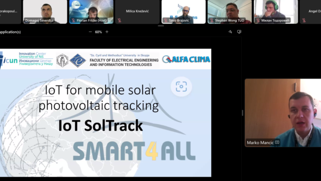 - Mr. Marko Mancic gave an overview of the IoT Soltrack project, proposed by Innovation Center University of Nis (ICUN) (Serbia), the Faculty of Electrical Engineering & Information Technologies (FEEIT) and Alfa Klima (Serbia)