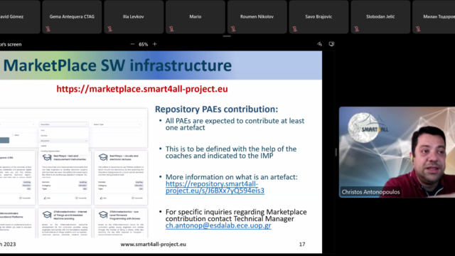 The floor was also given to Christos Antonopoulos (UoP), technical manager of SMART4ALL, who introduced the CTTE winners to SMART4ALL Marketplace emphasizing on their obligation to provide artefacts as a contribution to this novel one-stop-smart-shop, and to Katerina Lamprakopoulou (PSP), SMART4ALL communication officer, who gave the main communication guidelines for delivering material showcasing the projects’ results and supporting the experiments’ sustainability.