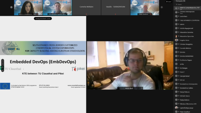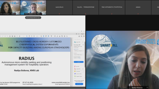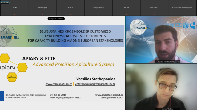 During the morning session, which was open to all attendees with free registration, 7 of the funded experiments of the first round of SMART4ALL Open Calls (EmbDevOps KTE, APIARY and EDIoT FTTEs, FlexCLEC, RADIUS, ReAsssure and TONI-AI) were presented, while SMART4ALL Task Forces representatives Prof. Cornelia Weltzien and assistant professor Tanya Politi, offered insightful comments on the Digitized Agriculture and Digitized Environment verticals respectively.