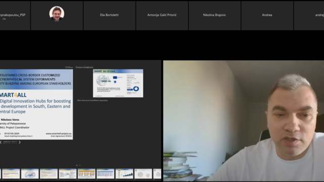 The event was attended by academics, researchers and SMEs’ representatives, involved in digital innovation activities. During the webinar, which was moderated by Boris Antic, Assistant Professor of the Faculty of Technical Sciences Novi Sad (FTN), participants were initially introduced to the services and funding schemes of the SMART4ALL network by Nikolaos Voros, Professor at the University of Peloponnese (UoP) and Project coordinator of SMART4ALL.