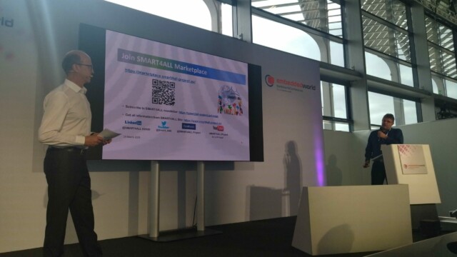 In the context of the event, a pitching event for start-ups was organized on the first day and the project coordinator, Nikolaos Voros, was invited for a short pitch, presenting SMART4ALL achievements, network and Marketplace, before a targeted audience. Professor Voros also attended the Embedded World Awards ceremony, having participated as a jury member on the evaluation of nominees proposals.