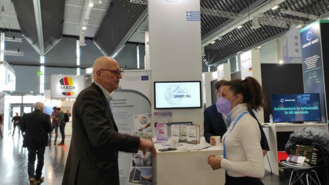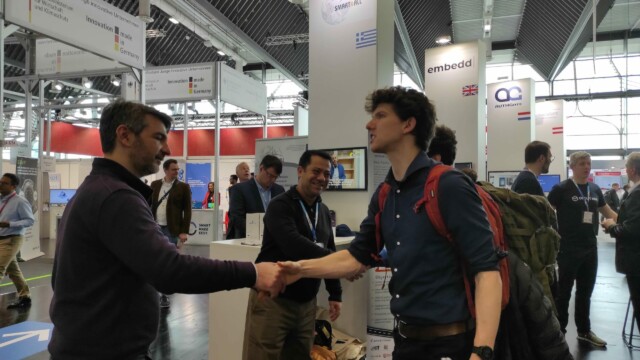 On 14 – 16 March 2023, SMART4ALL participated, for second consecutive year, in the Embedded World Exhibition & Conference (EW) 2023, which took place in Nuremberg. EW is one of the biggest electronics shows in Europe, a prestigious global event for the embedded community. Seizing the opportunity for promoting the project, the SMART4ALL Marketplace services and tangible results of funded experiments, SMART4ALL was represented by the University of Peloponnese (UoP), Patras Science Park (PSP), Brandenburg University of Technology (BTU) and AVN, on a booth at the exhibition and was further advertised by its coordinator, prof. Nikolaos Voros, on a pitching event organized in the context of the exhibition.