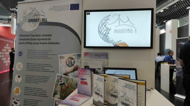 For three days, SMART4ALL project coordinator, professor Nikolaos Voros, technical manager, assistant professor Christos Antonopoulos, the Head of the Mentoring Committee, Florian Fricke, communication officer, Dr. Katerina Lamprakopoulou, and AVN representative, Msc. Eng. Christos Panagiotou exchanged information about innovative technologies with other exhibitors and visitors and developed valuable contacts from around the world, offering solutions to startups and bigger companies focusing on marketplace services. More than 20 companies’ representatives visited SMART4ALL booth and were informed about SMART4ALL, through one-in-one meetings enhanced with multimedia material (videos, poster, flyers), while the SMART4ALL team visited selected booths of other exhibitors sharing SMART4ALL key facts.